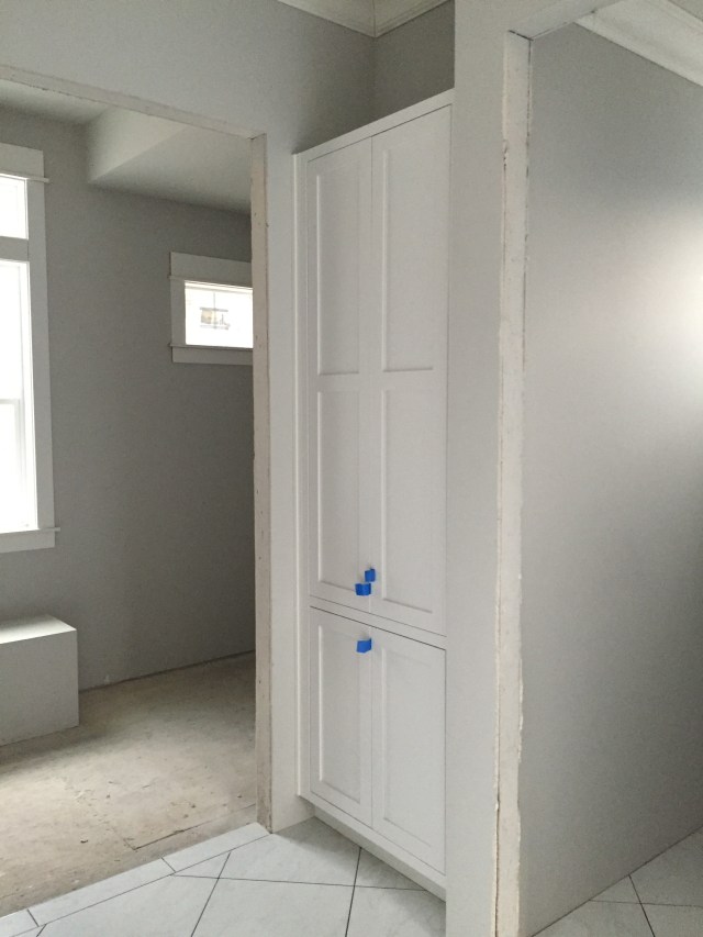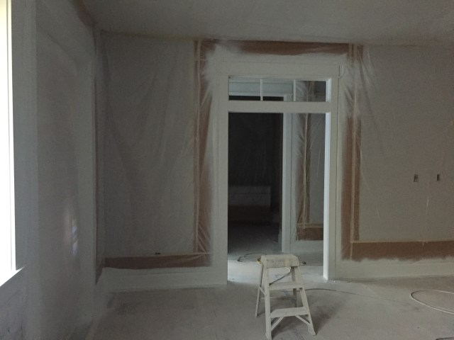 The painters have set up a spray booth in the storage room downstairs where they can paint doors and whatever else they have. I’m steering clear of this space though until they take down all of the plastic. A little too Dexter-esque for my liking.