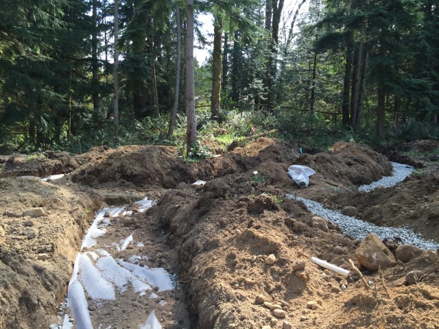 Also, the septic installation began this week. After getting the septic notice on the title recorded with King County and submitted to the health department, the septic stub-out was released and they were ready to do the install right away. By Saturday, they had the tank set in the ground. While Joel and I checked out the progress inside the house, we laid out a blanket and the boys ate their Subway lunch by having a picnic on top of the rock pile. Little do they know that that’ll eventually be part of the septic drainfield!