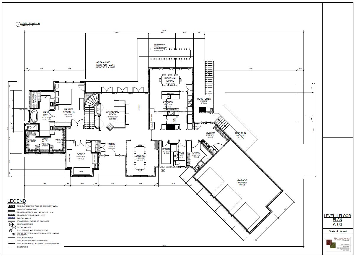 As we’d measure out each room we’d also make changes in CAD to the size/shape as well. This really didn’t affect too many of the rooms, but we did cut a foot out of the dining room. I’m still not sure if this is the right thing, but I’m pretty sure that an 11’ wide dining room will be enough space. I’ll measure a few other people’s dining rooms before settling on that I’m sure. What I like about taking out a foot from the dining room is that it also takes a foot out of the great room and in return a foot out of the downstairs. That really does save some space in two areas that are likely larger than need be. We also took a foot out of the entryway – but that might end up being too tight…we’ll see what Mike says.