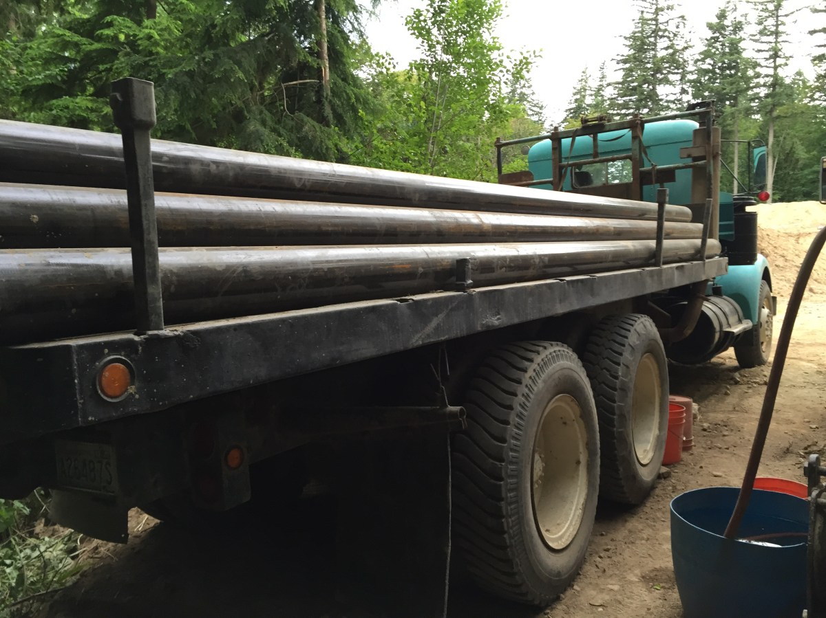 2015-06-18 19.46.37 Published June 18, 2015 at 3264 × 2448 in Week 2: Our Private Well Drilling « Previous Next » The turquoise truck hauled all of the casing pipe.