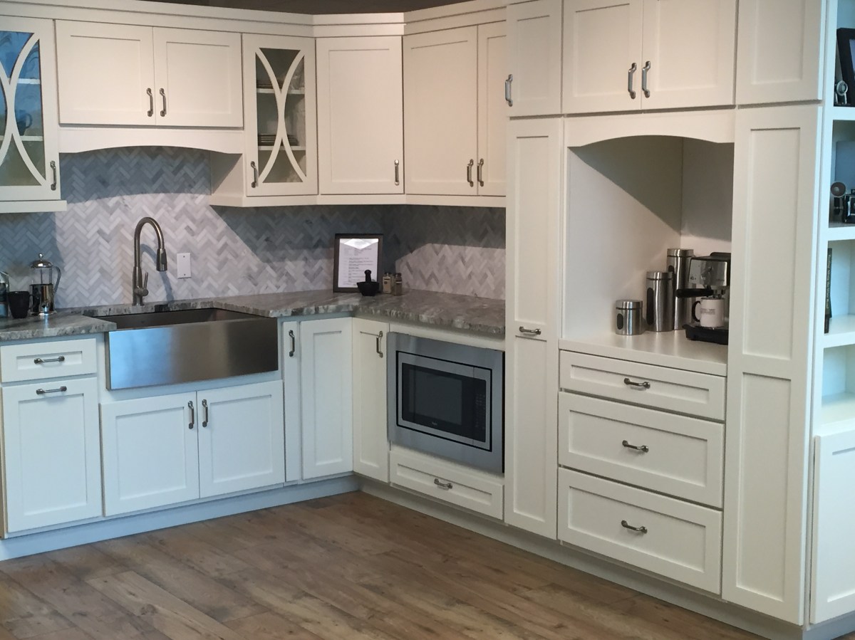 2015-07-20 09.03.49 Published July 25, 2015 at 3264 × 2448 in Week 7: Waterproofing, Plumbing, Well Pumping & Cabinetry Shopping « Previous Next » Here’s a pretty kitchen in their show room with full overlay shaker cabinets.