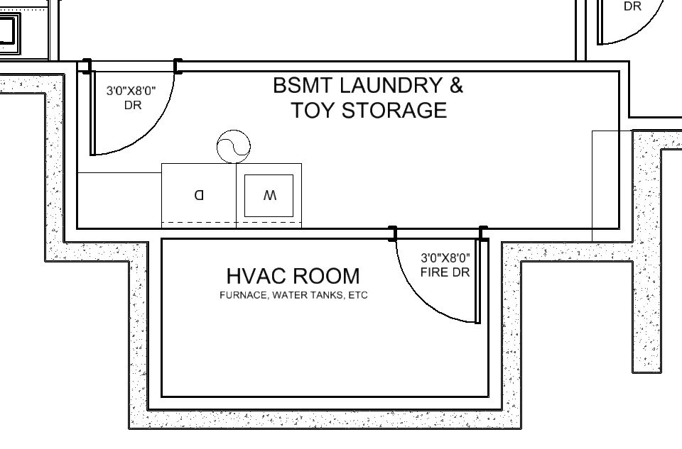 Toy Storage Redesign Published July 25, 2015 at 960 × 633 in Week 7: Waterproofing, Plumbing, Well Pumping & Cabinetry Shopping « Previous Here’s the new design of the toy storage & HVAC space. More space has been given to the HVAC equipment.