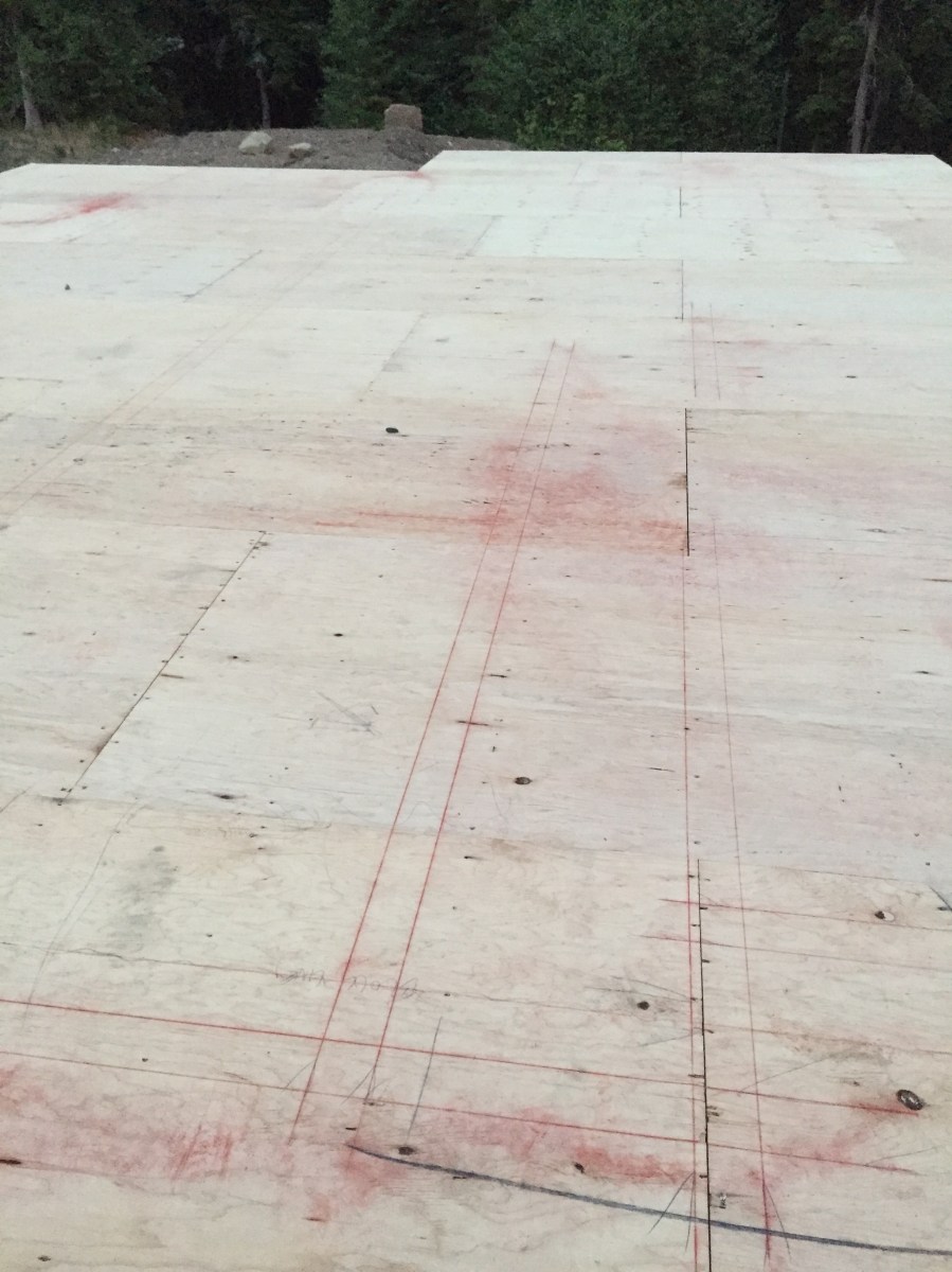 2015-08-13 20.35.14 Published August 16, 2015 at 2448 × 3264 in Week 10: Floor Joists & Door Delivery « Previous Next » The upstairs wall lines are all laid out and we can start to get an idea of what the first floor will feel like.