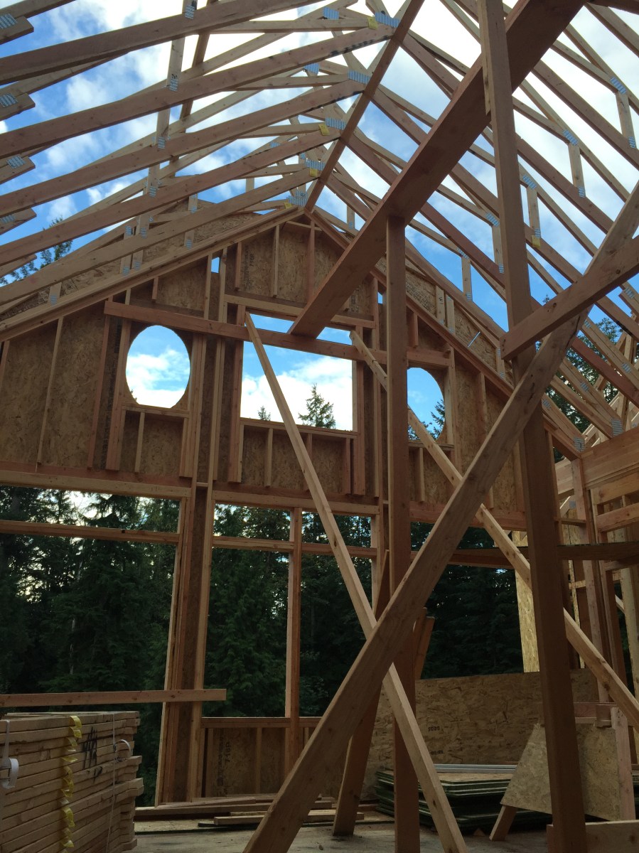 2015-09-02 18.12.12 Published September 5, 2015 at 2448 × 3264 in Week 13: Trusses are Up & Barge Board Design « Previous Next » The trusses are up in the great room!