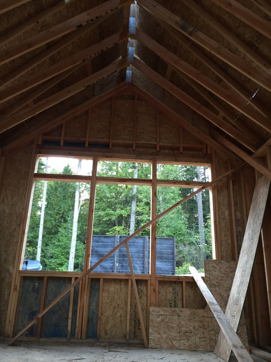 2015-09-27 18.15.38 Published September 28, 2015 at 2448 × 3264 in Week 16: Roof Sheathing & Well House Foundation « Previous Next » This will be our office, which will have a vaulted ceiling.