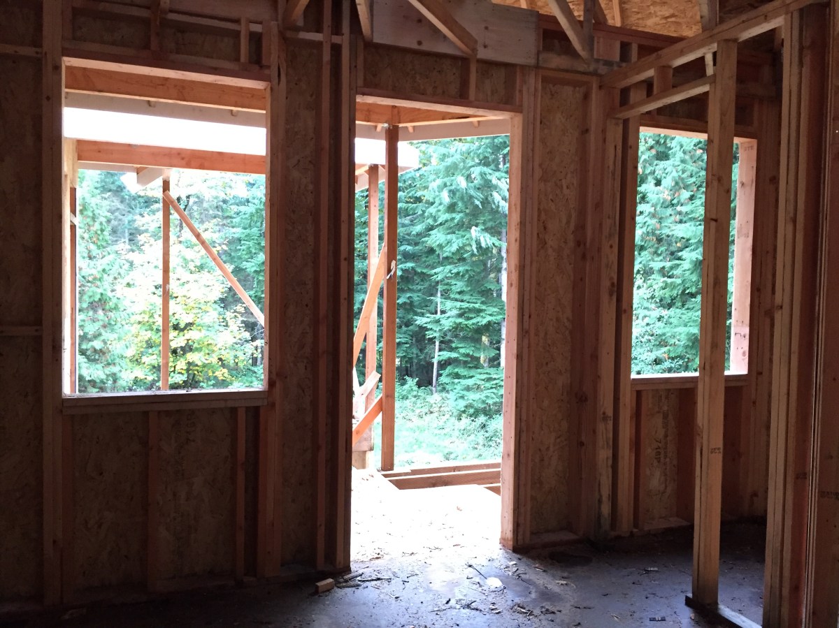 2015-10-11 16.48.55 Published October 18, 2015 at 3264 × 2448 in Week 18: Getting Ready for a Roof, Window Walkthrough & Countertops « Previous Next » The mudroom door was FINALLY added this week. The framers made a mistake originally and forgot to put it in! On top of that, we also had them increase the size of the windows in the mudroom (left) and the mudroom bathroom (right).