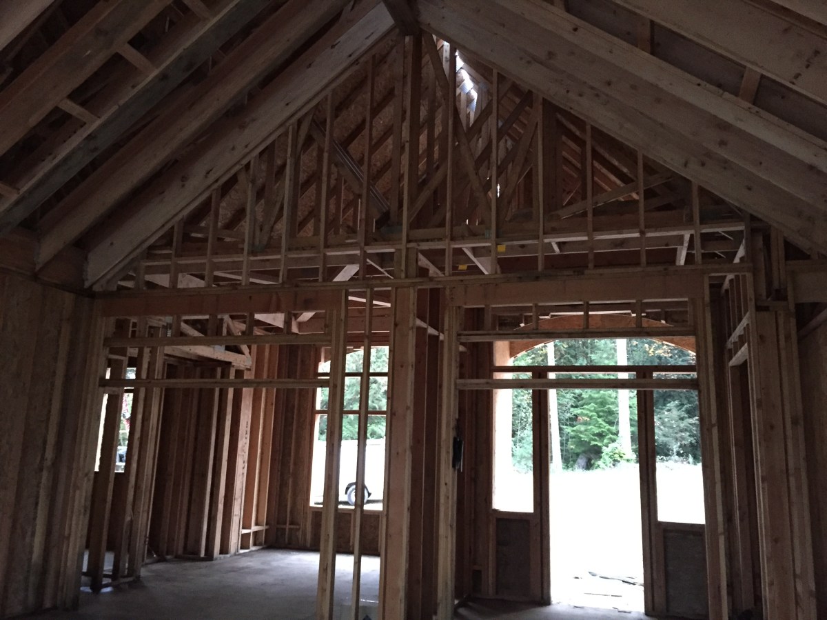 2015-10-21 17.54.04 Published October 25, 2015 at 3264 × 2448 in Week 20: We Have a Roof…plus More Ceiling Details! « Previous Next » A view from the great room looking back at the dining & entry.