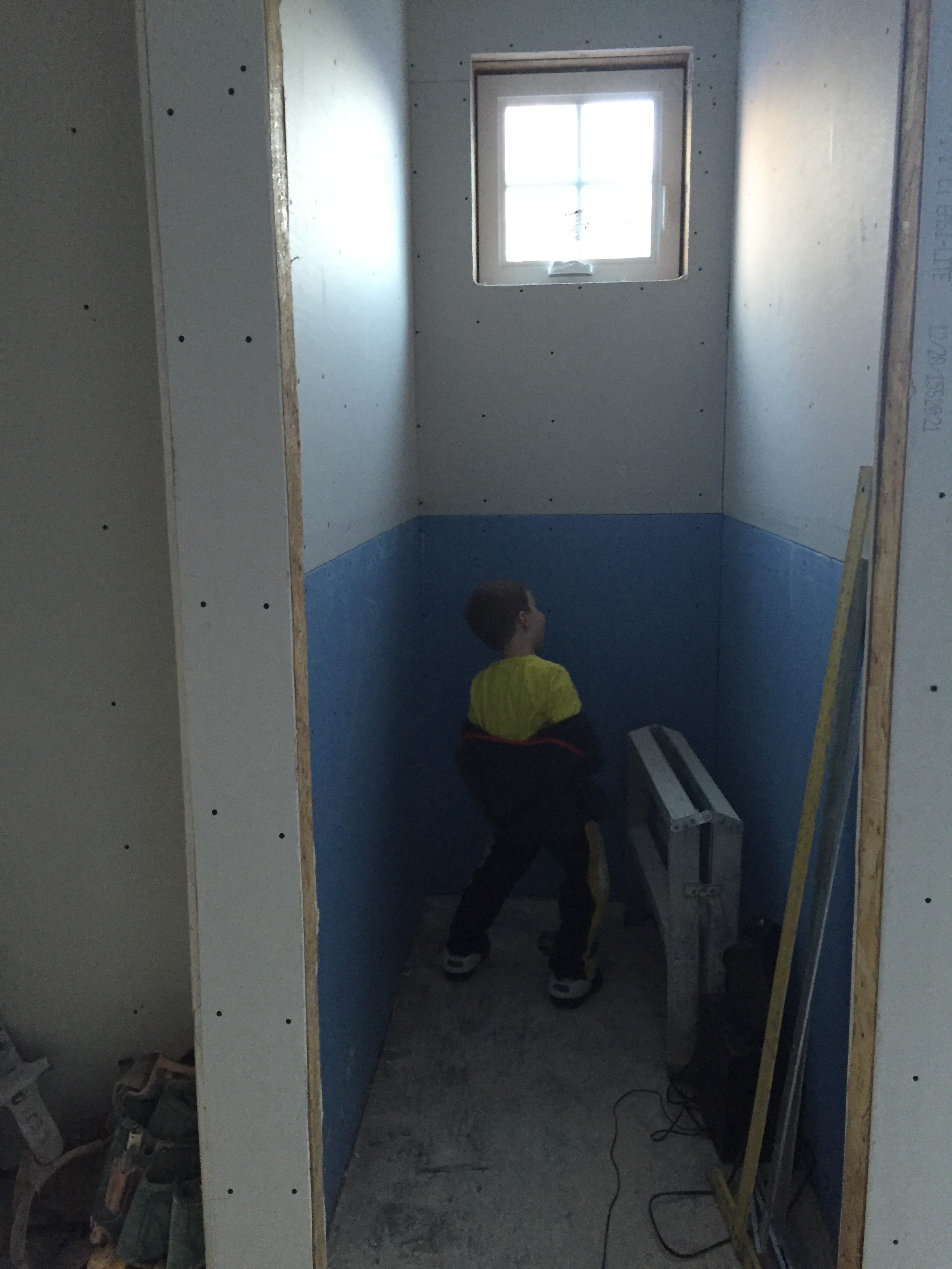 2016-01-09 09.17.55 Published January 10, 2016 at 2448 × 3264 in Week 31: Siding Complete, Insulation Complete, Gutters Complete, & Drywall Started « Previous Next » I swear, these boys think it’s so funny to pretend to go to the bathroom…where’s the toilet?!?