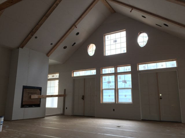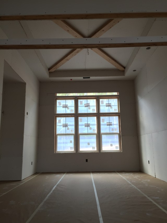 - Hands down my favorite ceiling in the house is in the dining room. Now…when are they going to arch off the drywall that’s covering the top window?