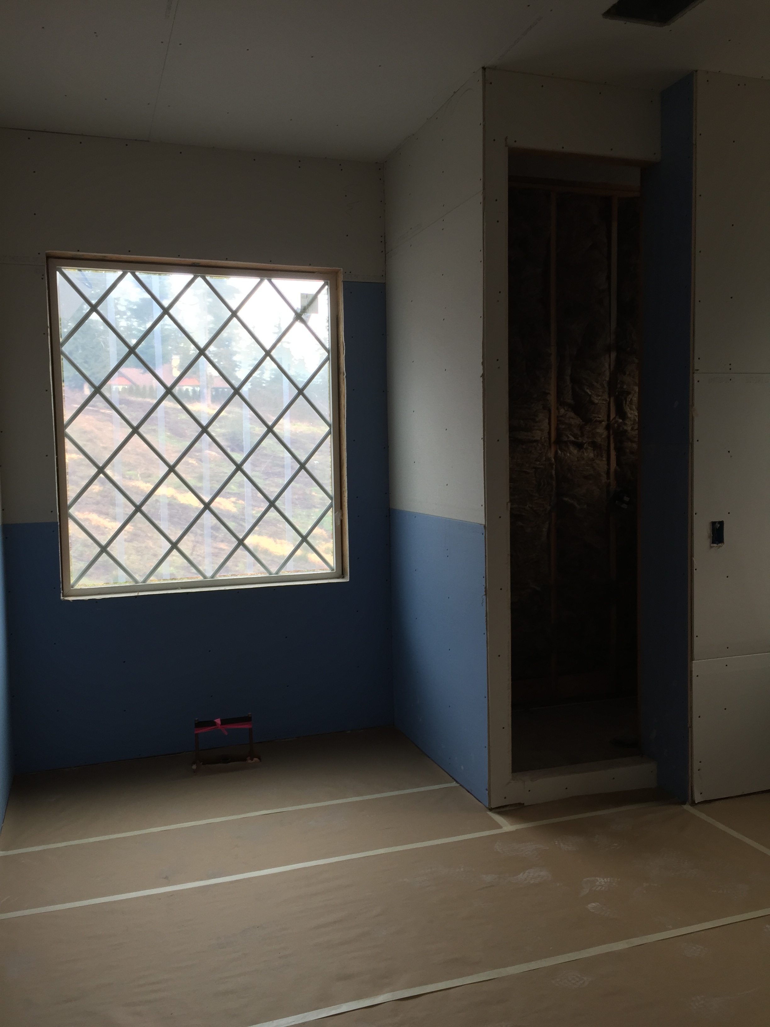 2016-01-16 11.52.42 HDR-2 Published January 24, 2016 at 2448 × 3264 in Week 32: Drywall Installed « Previous Next » The lower half of the drywall in the bathrooms are covered with a special coating to resist moisture and mold.
