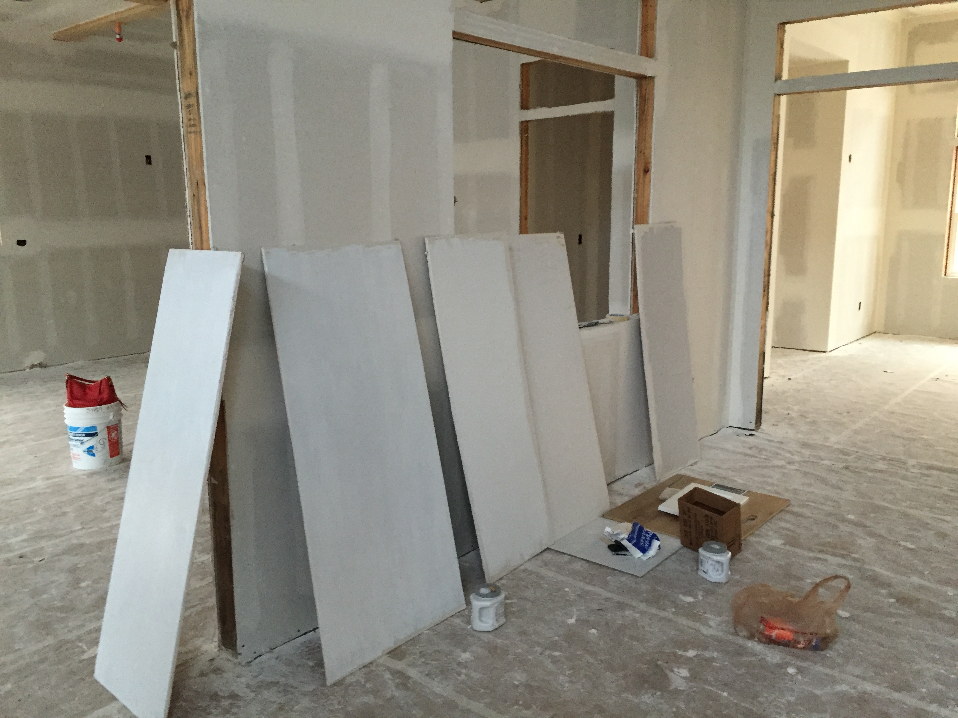 2016-01-24 15.42.09 Published January 24, 2016 at 3264 × 2448 in Week 33: Drywall Taping, Tile Selections & Paint Colors « Previous We ended up painting 3 more pieces of drywall on Sunday after a quick trip to Sherwin Williams. Still haven’t decided on colors and not quite sure what to do about that! I guess I’ll be out there next weekend painting and figuring colors out more.