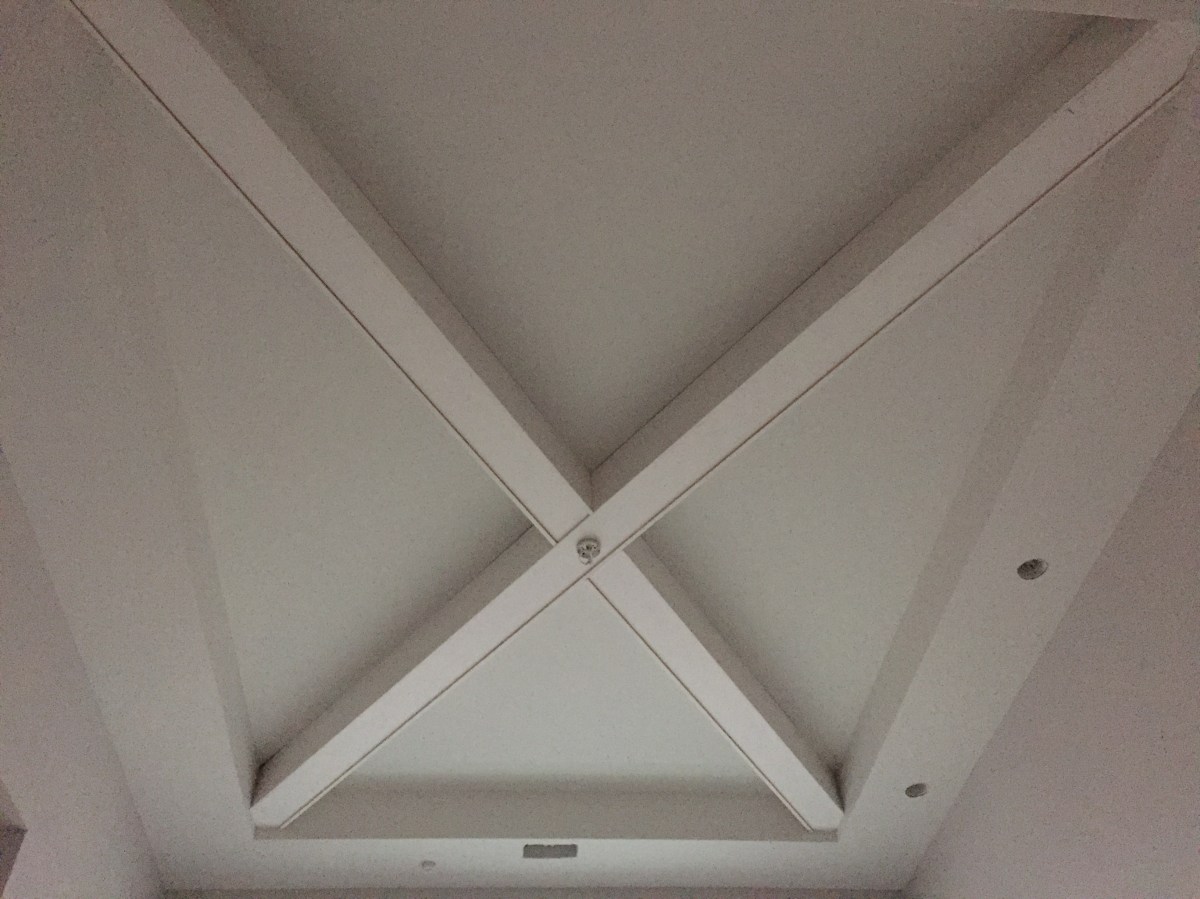 2016-02-09 07.32.18 Published March 4, 2016 at 3264 × 2448 in Week 36: Millwork & Tile Prep « Previous Next » The X beam in the dining room ceiling looks so fantastic. Definitely a fun detail and it’s just something different that’ll make our home more unique. Well worth the effort the guy put in all day Monday in creating it!