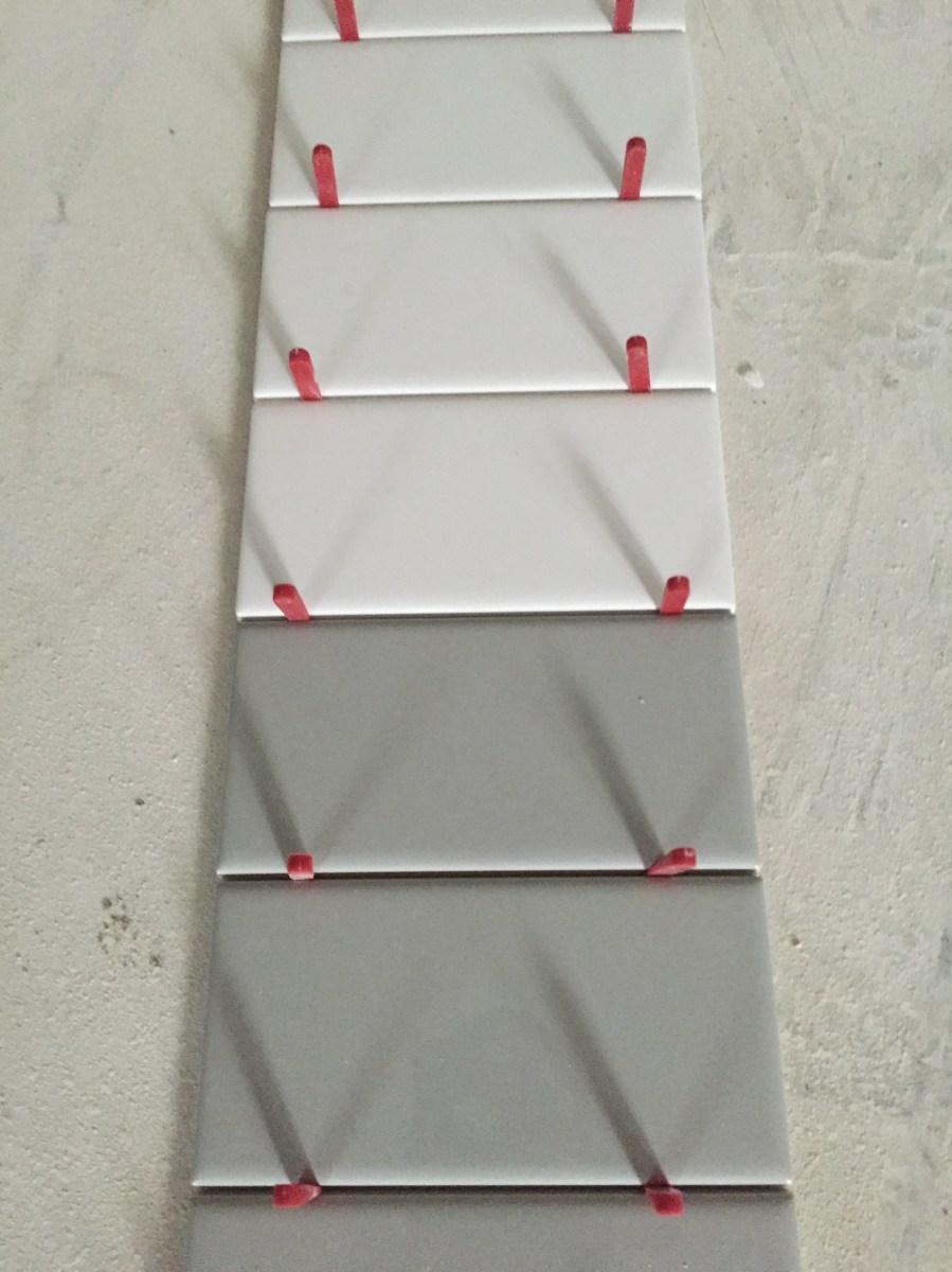 2016-02-13 11.46.12 Published February 14, 2016 at 2448 × 3264 in Week 36: Millwork & Tile Prep « Previous Next » We chose 3″x6″ subway tile for the guest shower – Dal Tile’s Rittenhouse in Desert Gray and Arctic White.