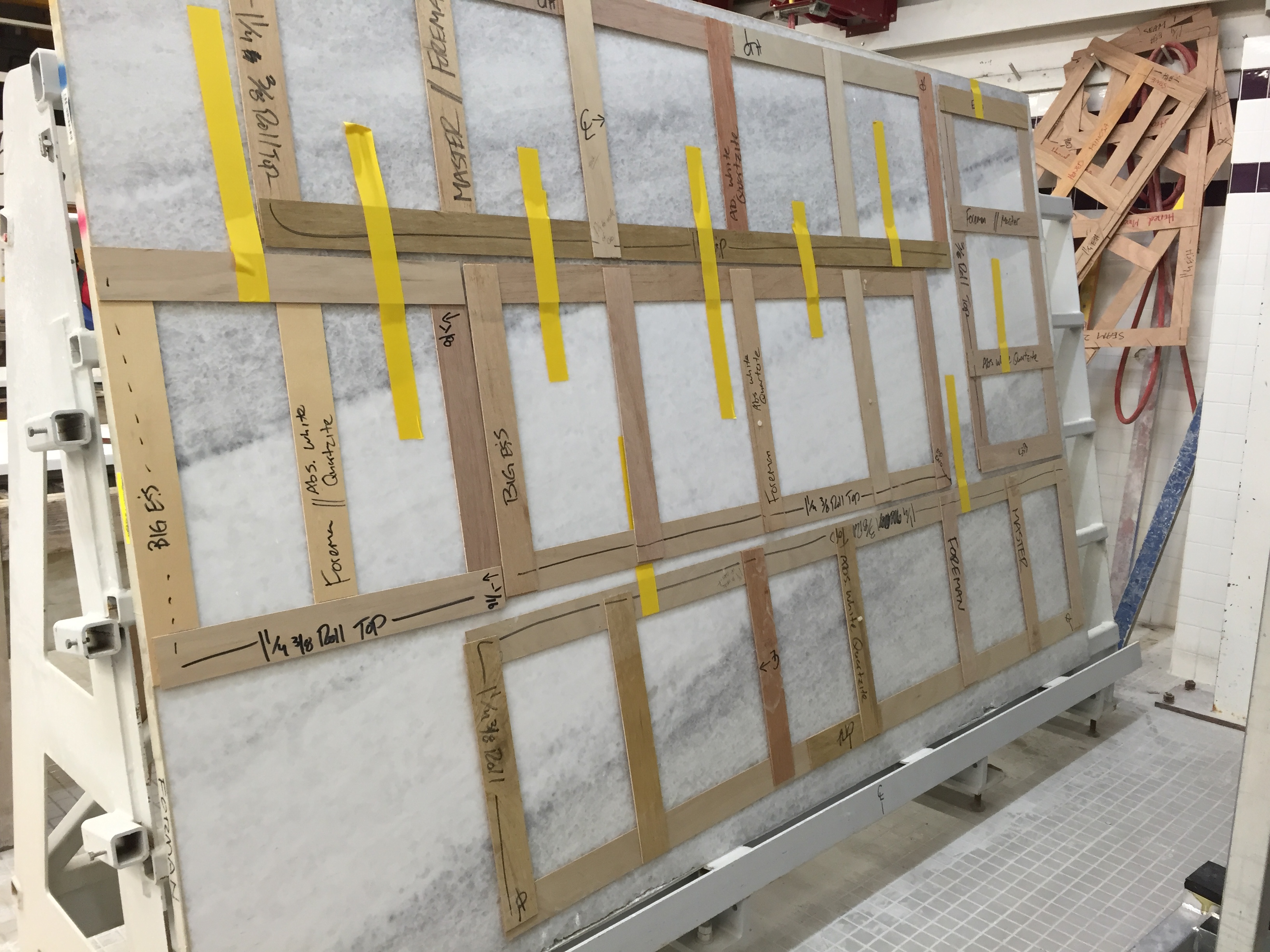 2016-03-08 08.21.15 Published March 13, 2016 at 3264 × 2448 in Week 40: Hardwood, Doors, Cabinetry & Countertops « Previous Next » This slab ended up getting most of the master bath which are the top, far side, and bottom templates. The center one is actually the butler’s pantry which will be unique being mostly white!