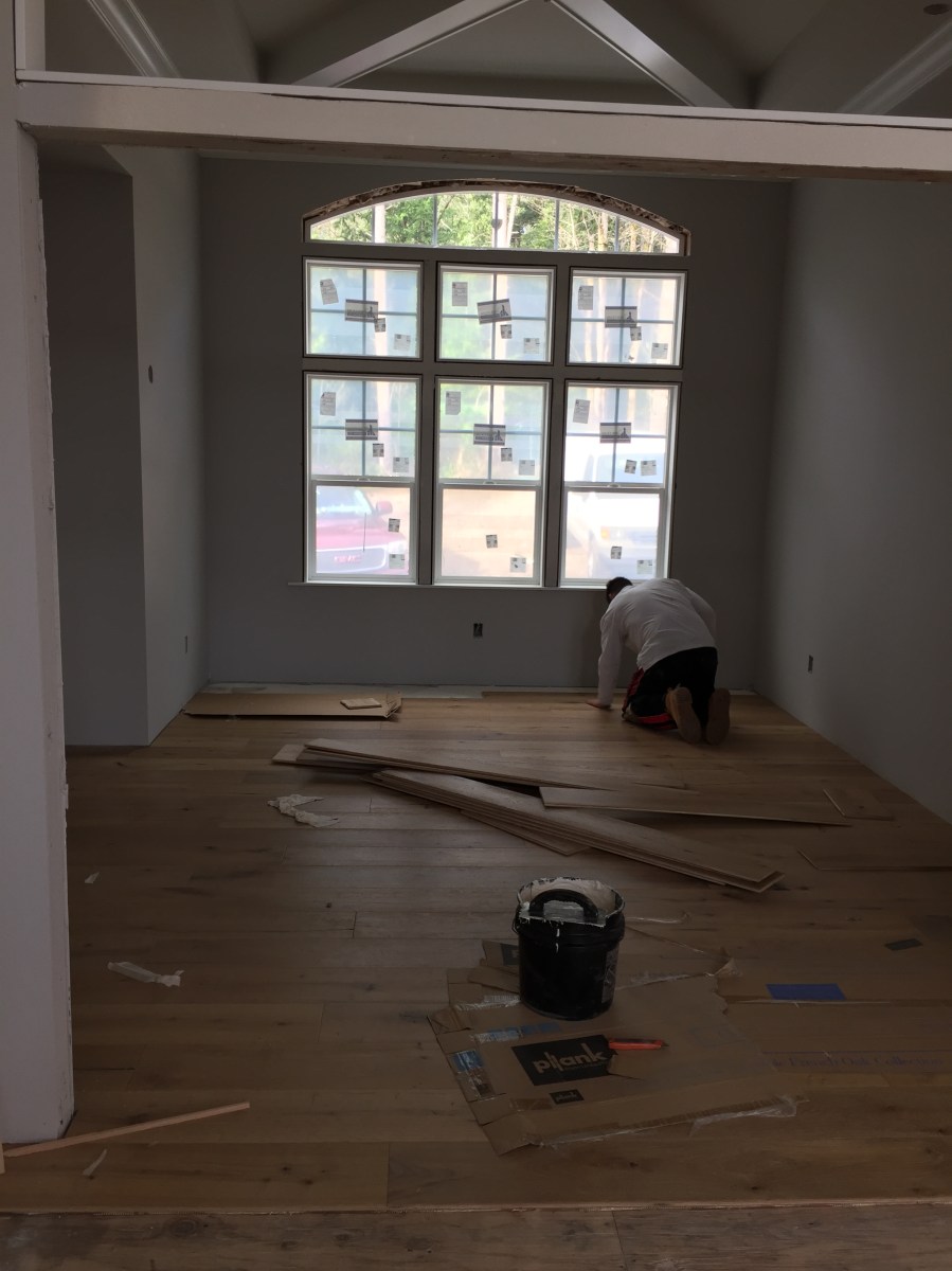 2016-03-10 08.55.50 HDR Published March 13, 2016 at 2448 × 3264 in Week 40: Hardwood, Doors, Cabinetry & Countertops « Previous Next » They started with the dining room upstairs! It was so exciting to see it being installed!