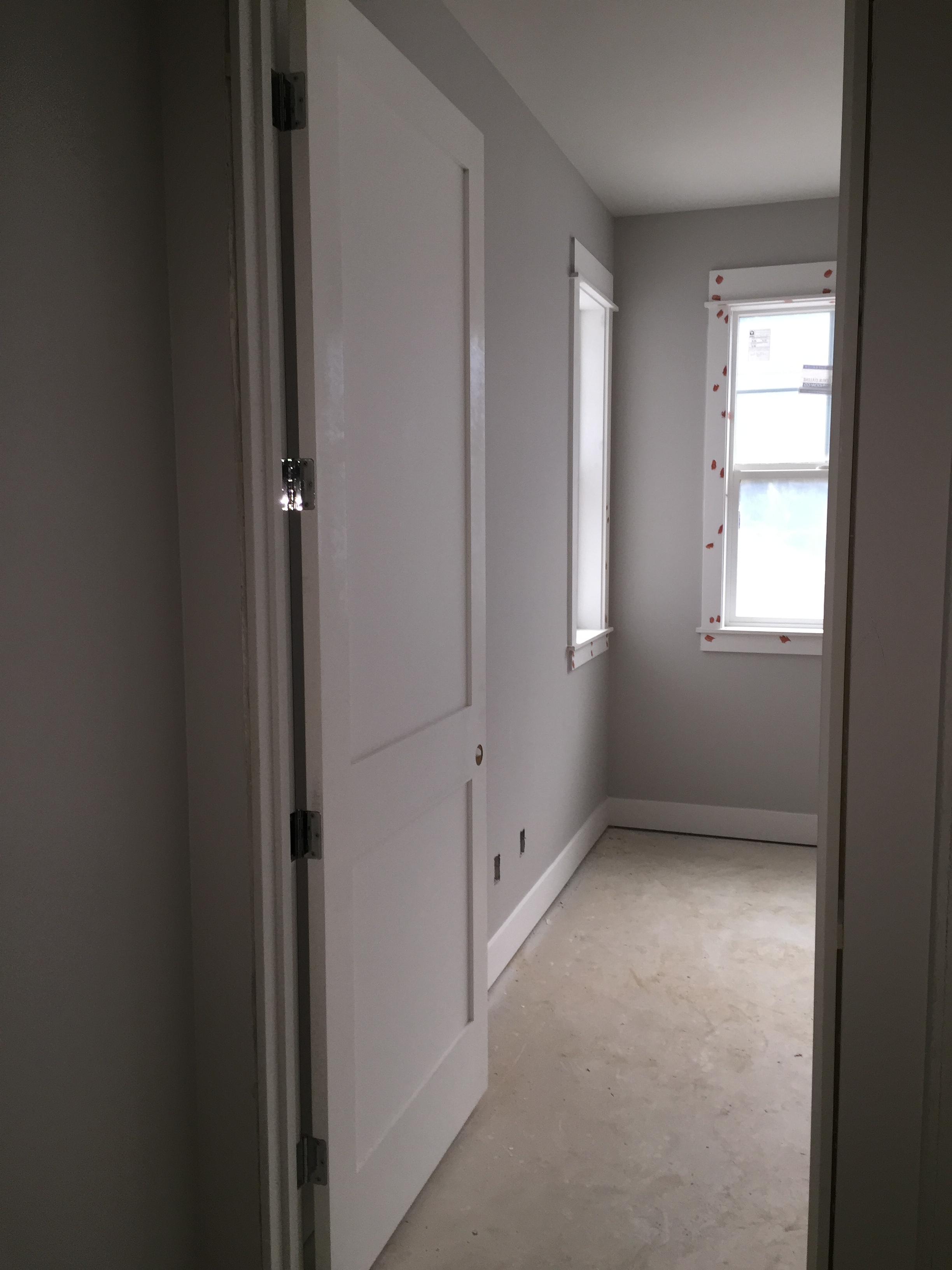 2016-03-11 13.00.19 Published March 13, 2016 at 2448 × 3264 in Week 40: Hardwood, Doors, Cabinetry & Countertops « Previous Next » Here’s the entrance to Cameron’s room – the 4 chrome hinges on the 8 ft doors look great!