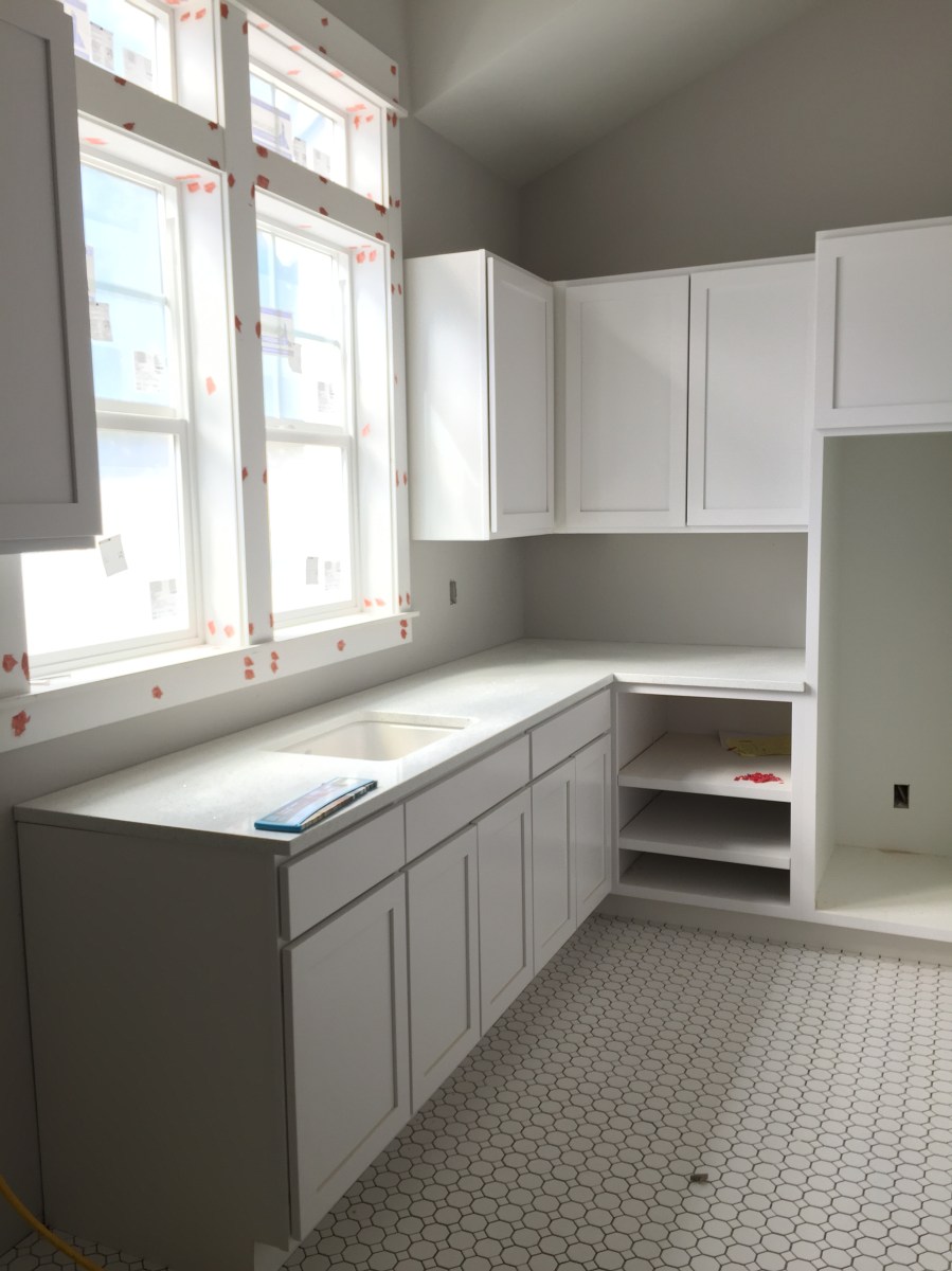2016-03-19 14.42.54 HDR-2 Published March 20, 2016 at 2448 × 3264 in Week 41: Countertops & Tile « Previous Next » Daltile’s Octagon Dot floor tile was installed this week along with the quartz countertops. The Kohler sink looks fantastic too!