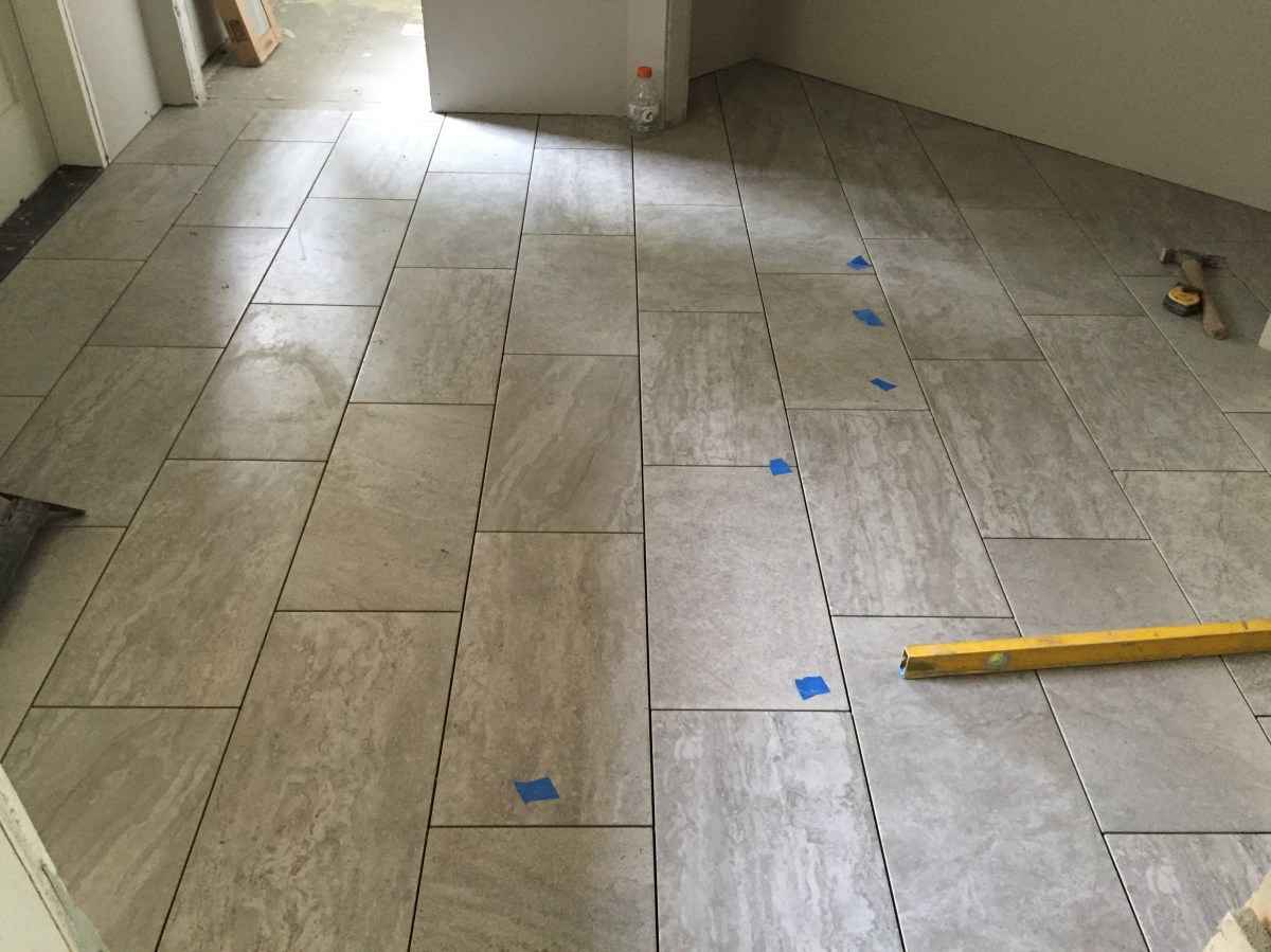 2016-03-19 14.43.18 Published March 20, 2016 at 3264 × 2448 in Week 41: Countertops & Tile « Previous Next » The mudroom tile was installed this week as well. It’ll eventually get a light gray grout – the same color used in the boys’ bathroom downstairs.