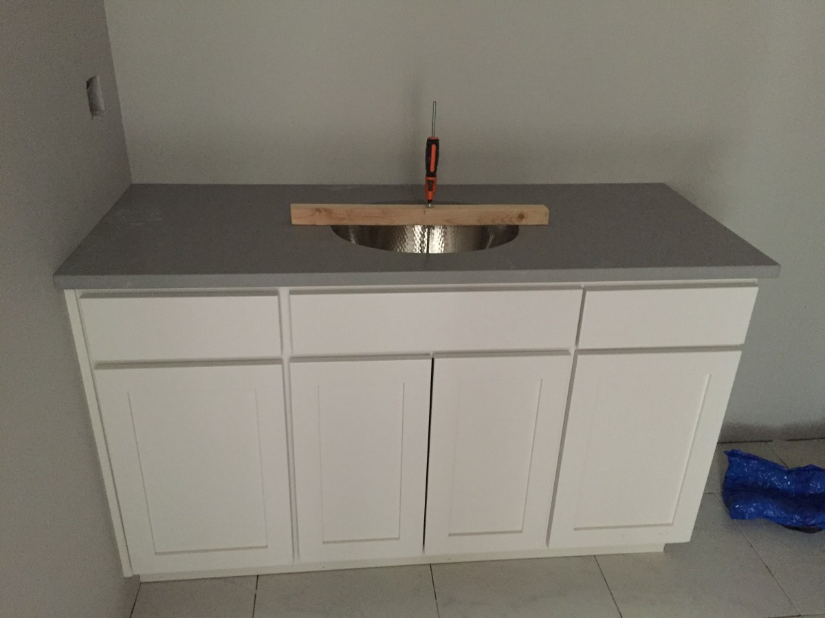 2016-03-19 14.44.55 Published March 20, 2016 at 3264 × 2448 in Week 41: Countertops & Tile « Previous Next » The powder bath also got the hammered sink and counters installed. It’s going to look so good in here once all of the hammered pewter finishes go in.
