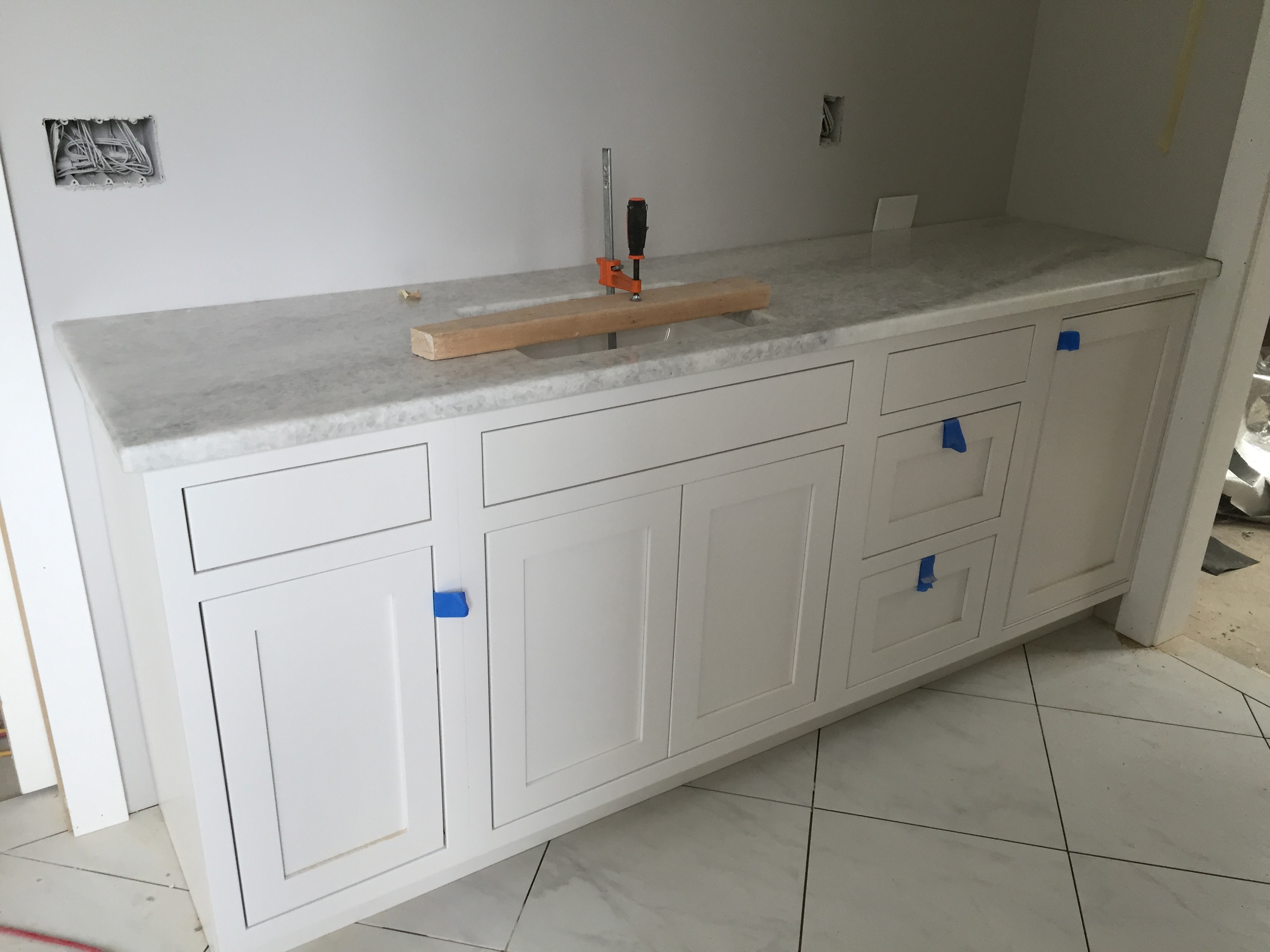 2016-03-19 14.47.41 Published March 20, 2016 at 3264 × 2448 in Week 41: Countertops & Tile « Previous Next » Joel’s countertop was also installed – mainly gray with a little white.