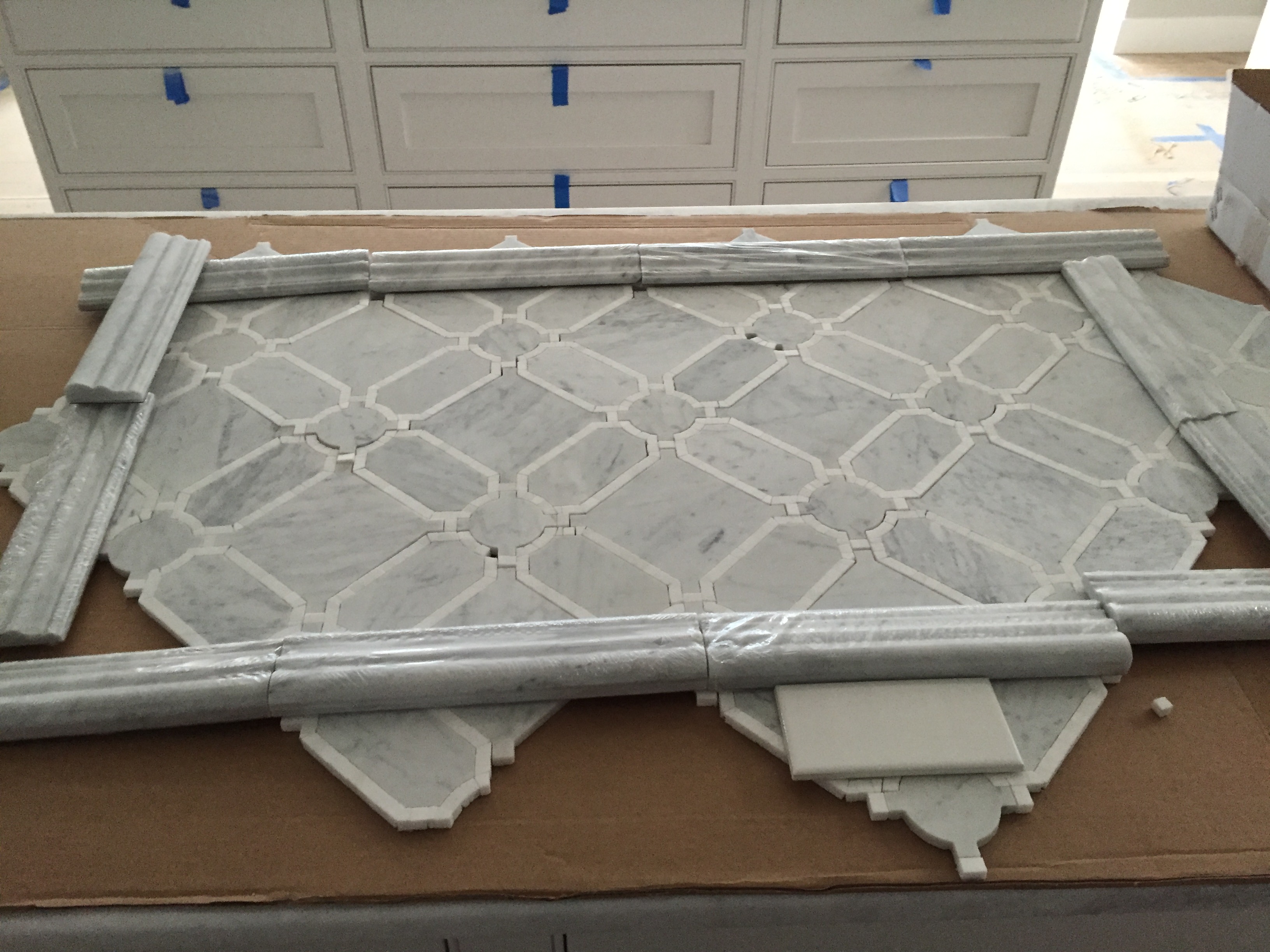 2016-03-23 15.56.55 Published March 27, 2016 at 3264 × 2448 in Week 42: Tile, Trimwork, Stairs, Septic, and Rental House Issues « Previous Next » This tile is absolutely my favorite in the entire house. It’s so graphic, and not feminine like most mosaic tile patterns. Even if he doesn’t say it now, I know Joel’s going to love it!