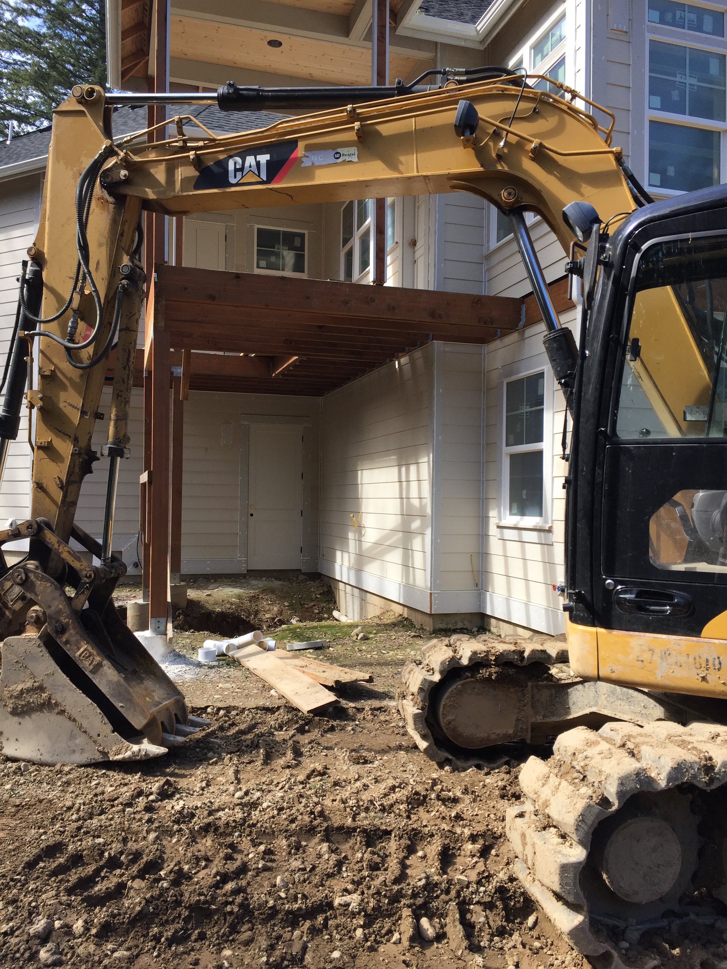 2016-03-26 13.49.34 Published March 27, 2016 at 2448 × 3264 in Week 42: Tile, Trimwork, Stairs, Septic, and Rental House Issues « Previous Next » Sort of fun to see heavy equipment back on site!