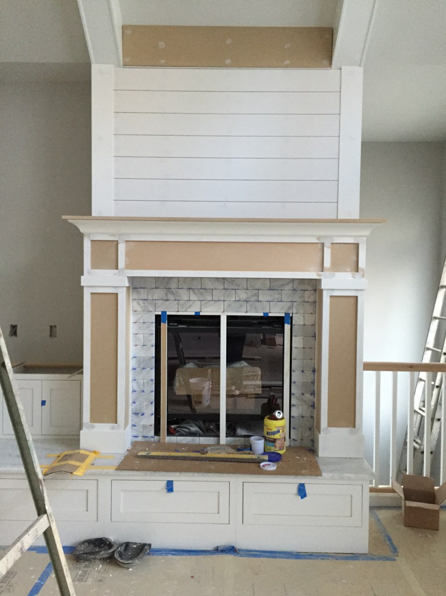 2016-03-29 18.37.12 Published April 8, 2016 at 2448 × 3264 in Week 43: Tile, Slabs, Drainfield & Downstairs Painting Next » The fireplace tile was installed this week.
