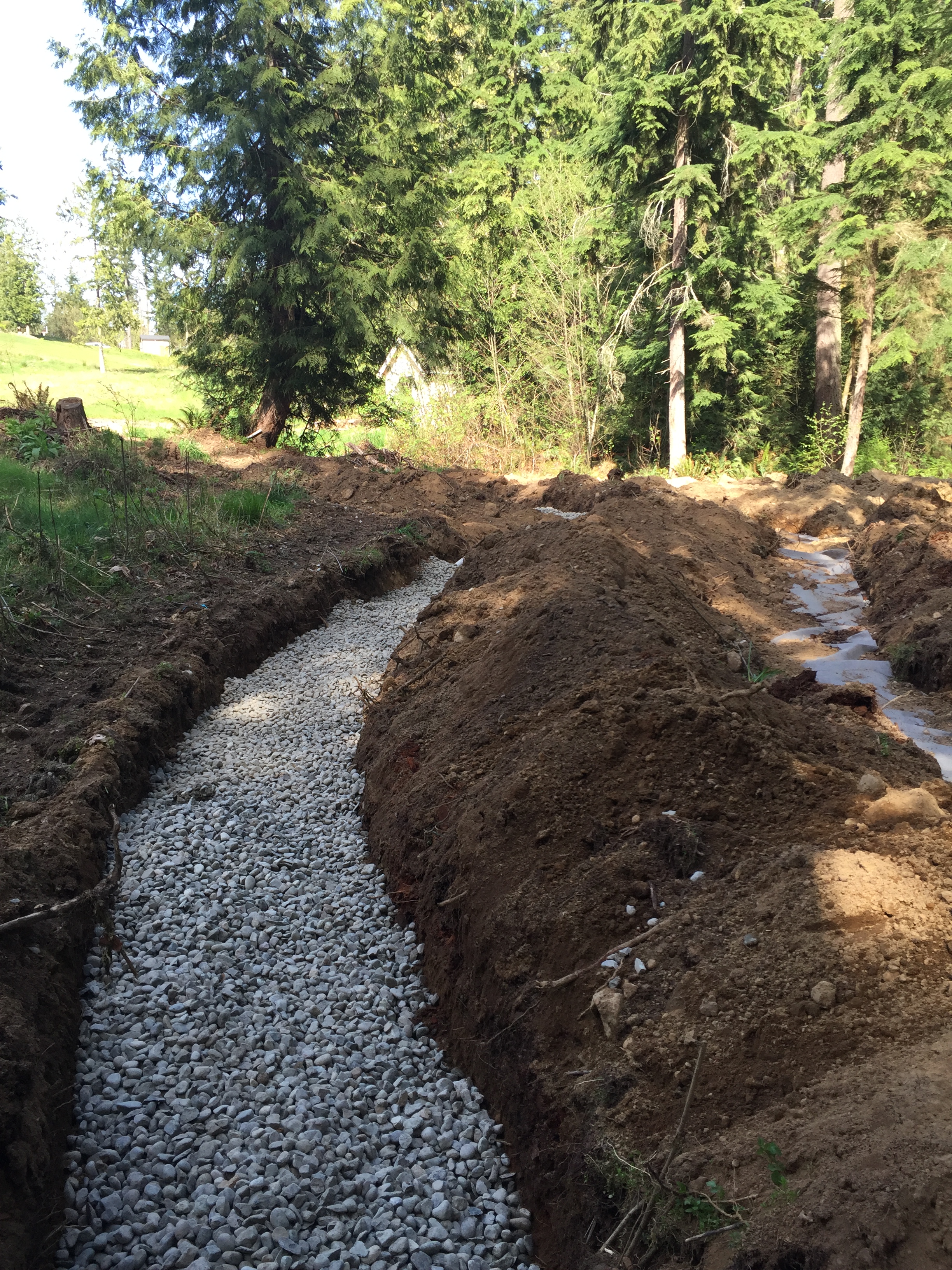 2016-04-03 14.32.10 Published April 8, 2016 at 2448 × 3264 in Week 43: Tile, Slabs, Drainfield & Downstairs Painting « Previous Next » Gravel drain rock was installed.
