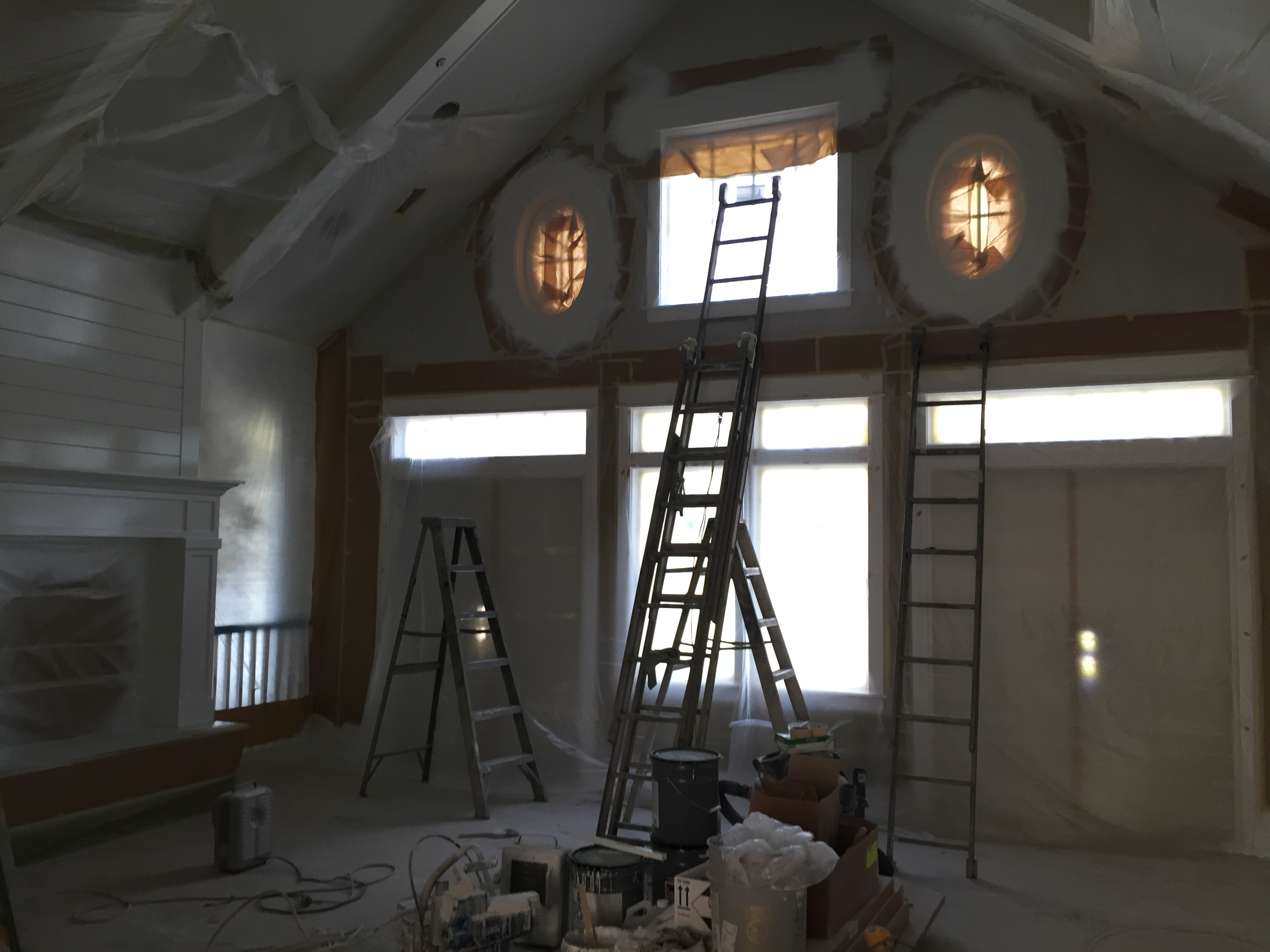 2016-04-08 17.24.39 Published April 23, 2016 at 3264 × 2448 in Week 44: Painting & Bar Top « Previous Next » The great room was all taped off this week so that all the trimwork could be sprayed.