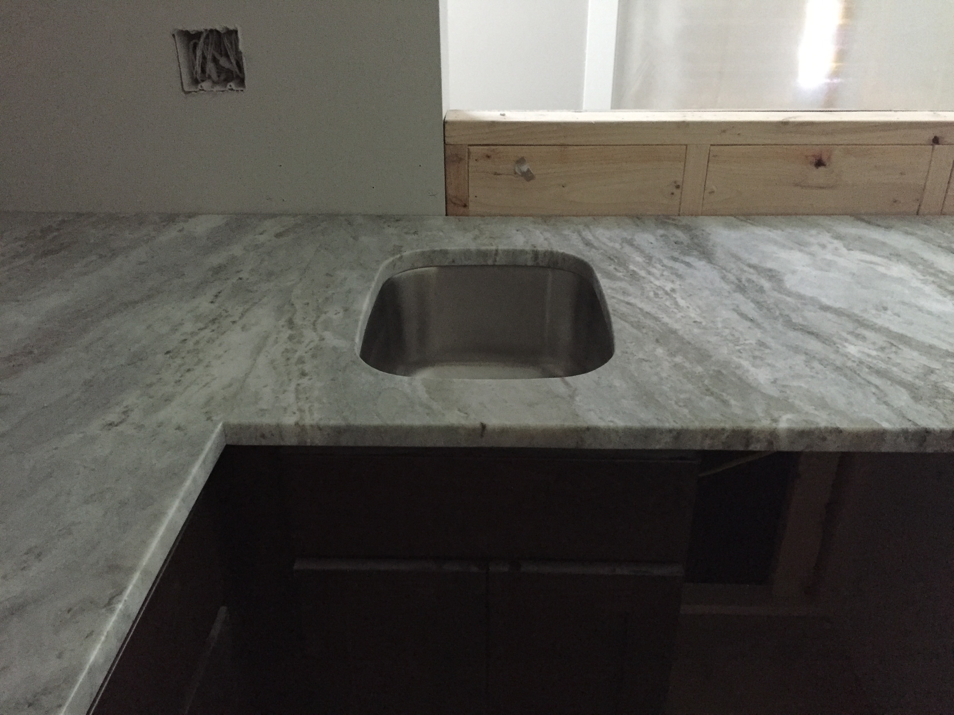 2016-04-08 17.27.34 Published April 23, 2016 at 3264 × 2448 in Week 44: Painting & Bar Top « Previous Next » The bar sink was installed too – and the quartzite seam to the left of the sink is book matched with the next slab.