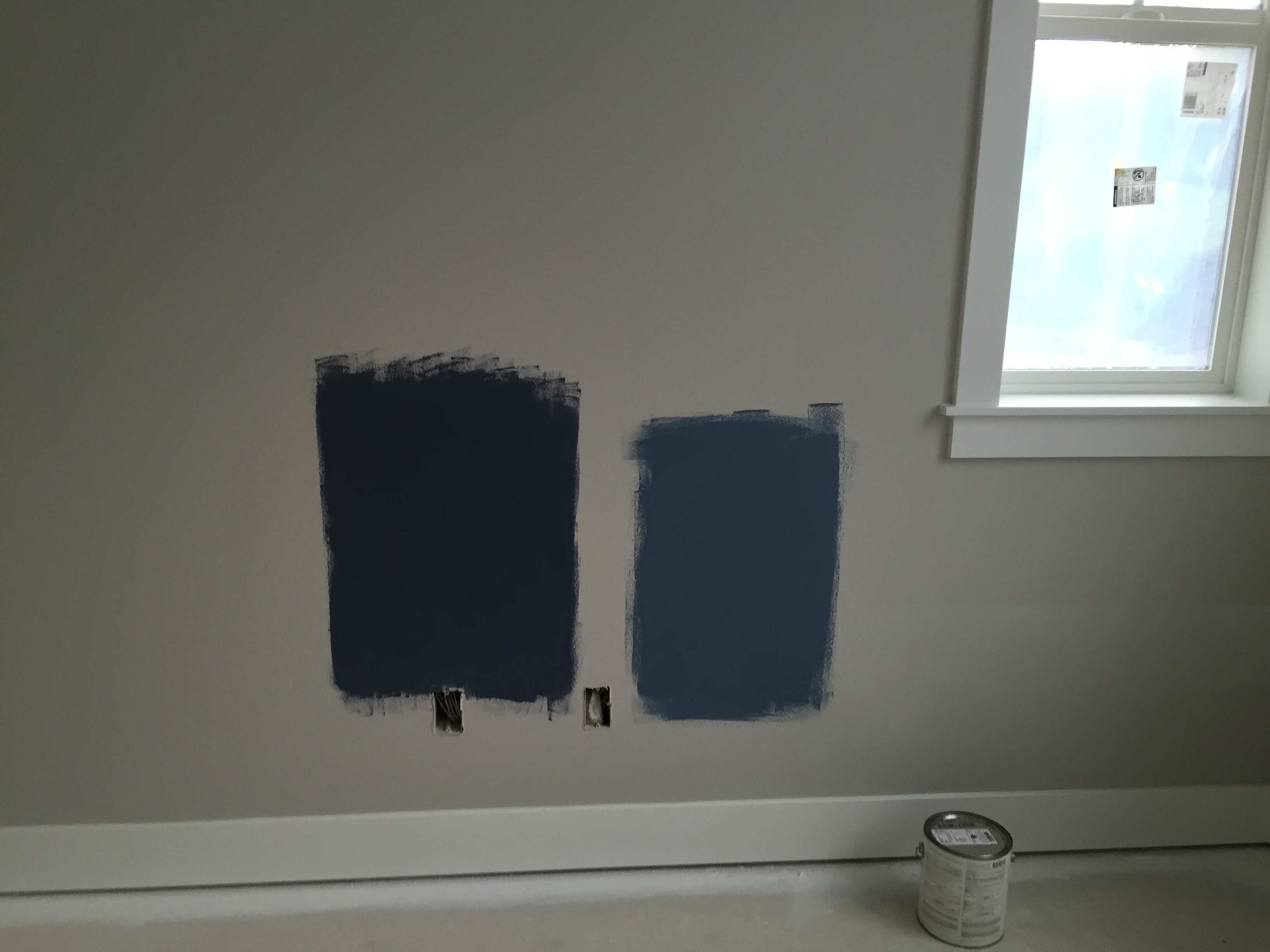 2016-04-05 07.37.24 Published April 23, 2016 at 3264 × 2448 in Week 45: Painting…some more trim Next » The darker navy on the left was from Restoration Hardware. I mixed that with a lighter blue from RH and created the color on the right – perfect!