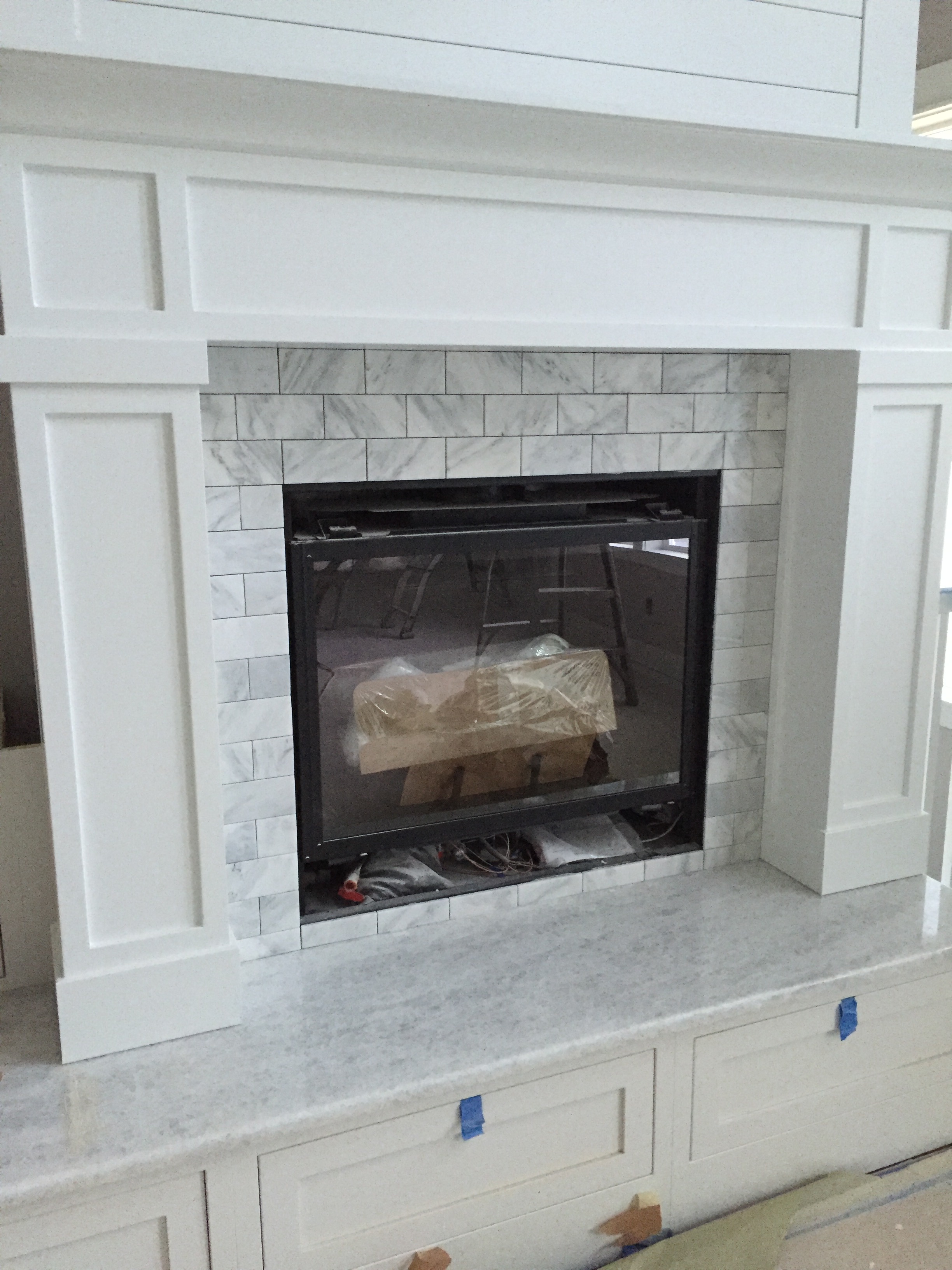 2016-04-13 19.05.41 Published April 23, 2016 at 2448 × 3264 in Week 45: Painting…some more trim « Previous They took the cover off of the hearth so this is the first time I’ve gotten to see the fireplace tile with the hearth. It’s looking better than I was expecting. and I know it’ll look even better with grout.
