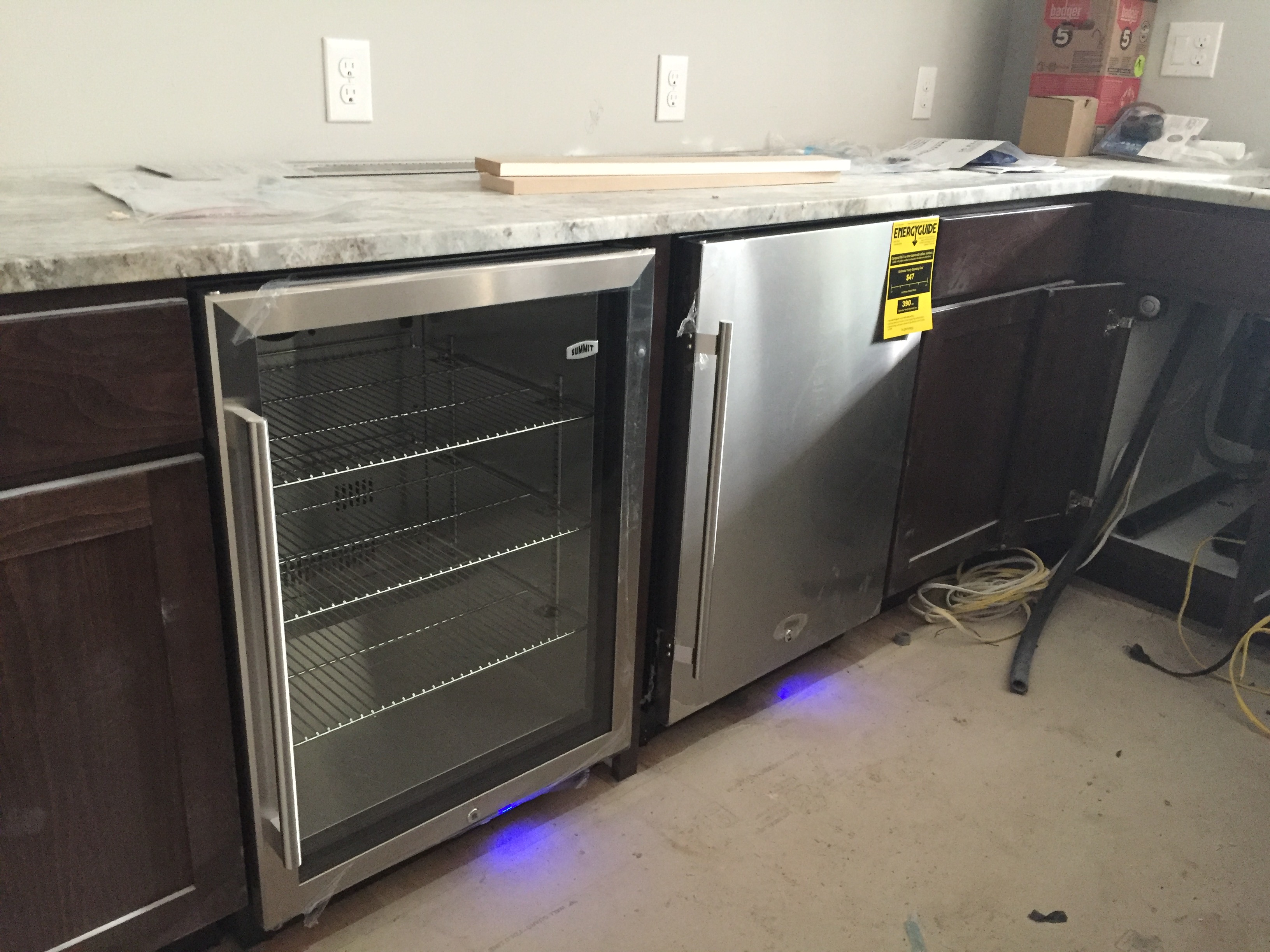 2016-04-26 07.40.41 Published May 13, 2016 at 3264 × 2448 in Week 47: Moving, Appliances, Lighting, Tile & Grading « Previous Next » And of course Joel has a beverage fridge and freezer in the bar. Perfect for entertaining.
