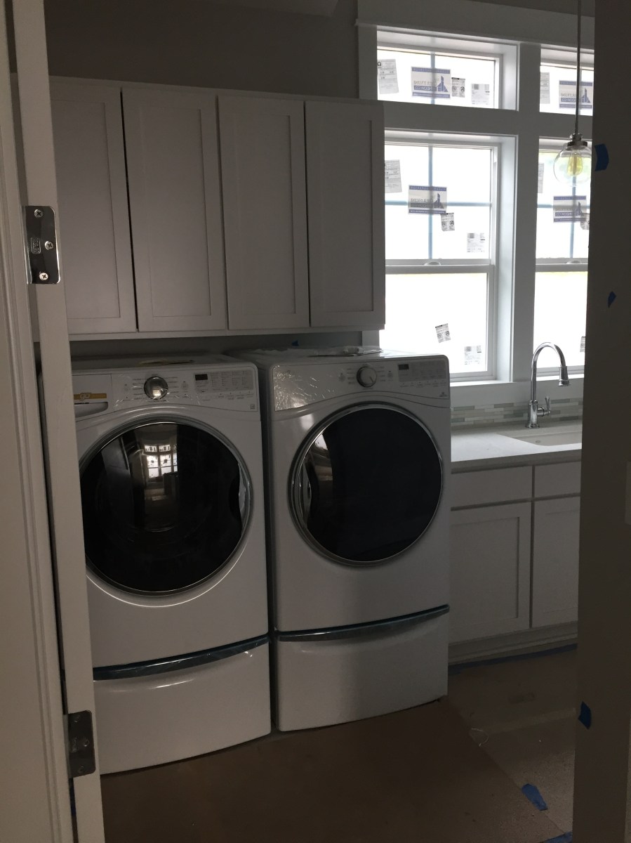 2016-04-26 07.42.01 Published May 13, 2016 at 2448 × 3264 in Week 47: Moving, Appliances, Lighting, Tile & Grading « Previous Next » The washer and dryer fit perfectly in the laundry room and I love that they’re elevated – so much easier to reach in and do laundry.